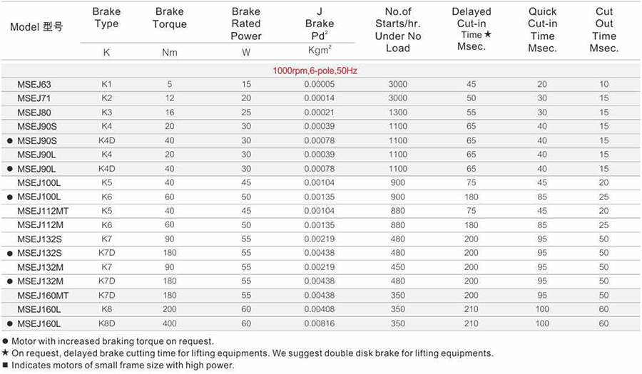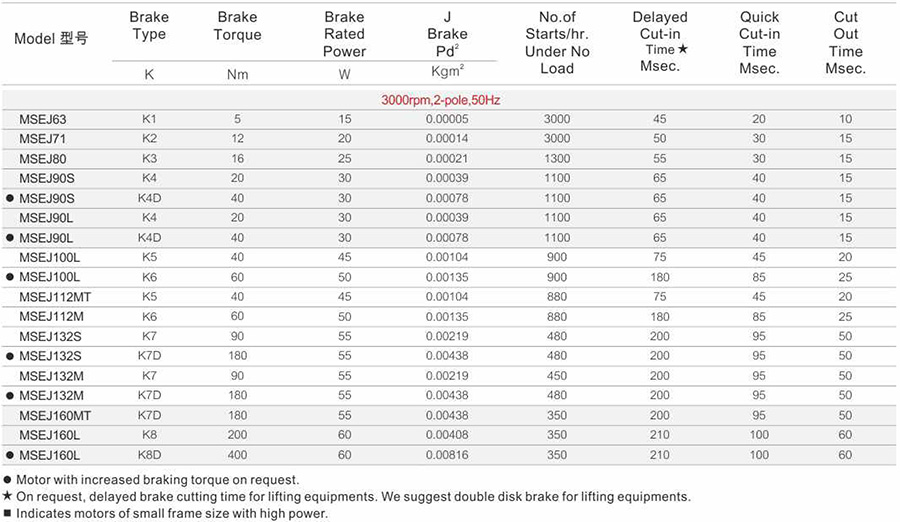 MSEJ series electromagnetic brake motors with squirrel cage rotor direct current brake